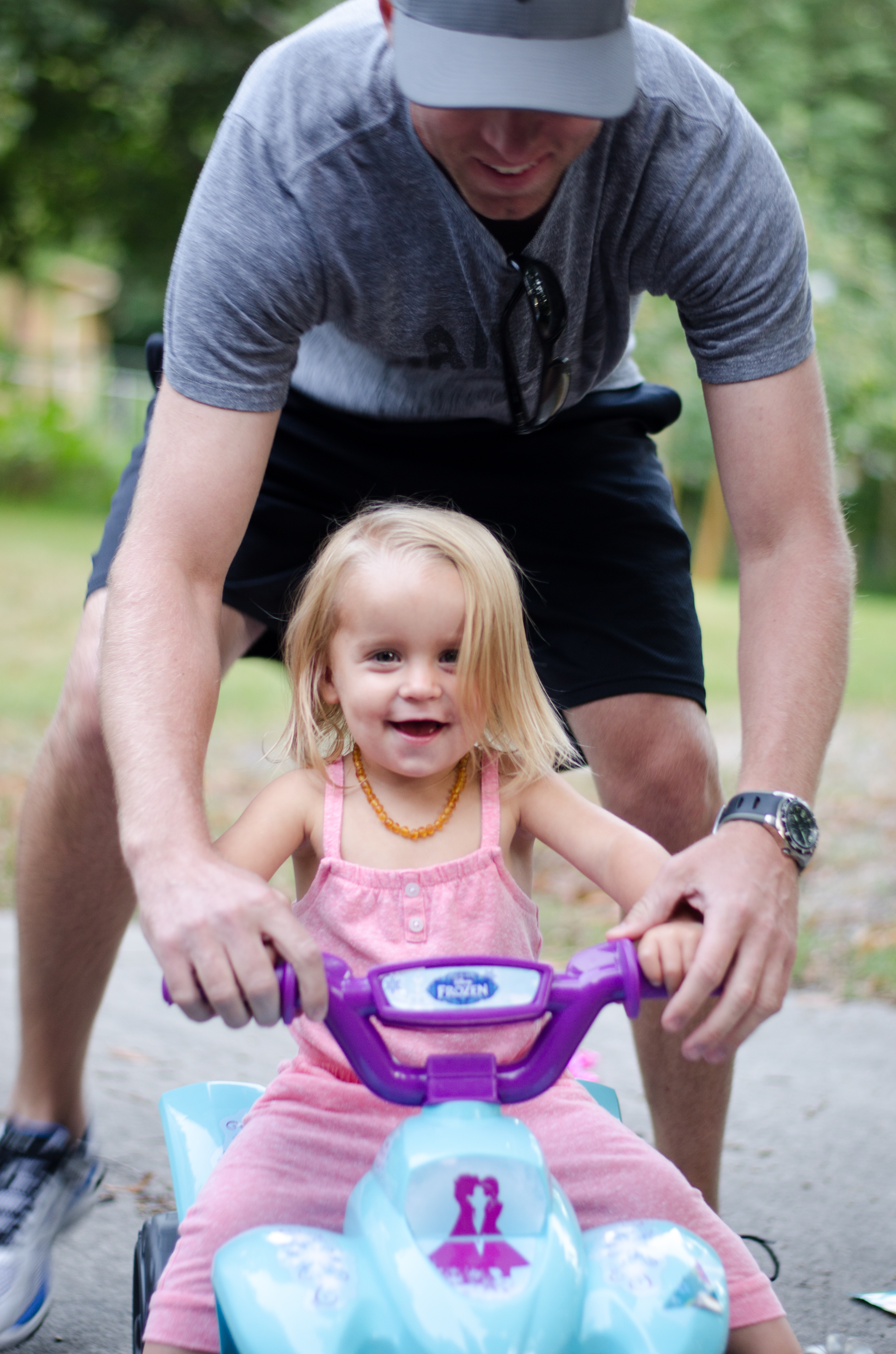 Push a button and it drives. What more could a two year old want!?