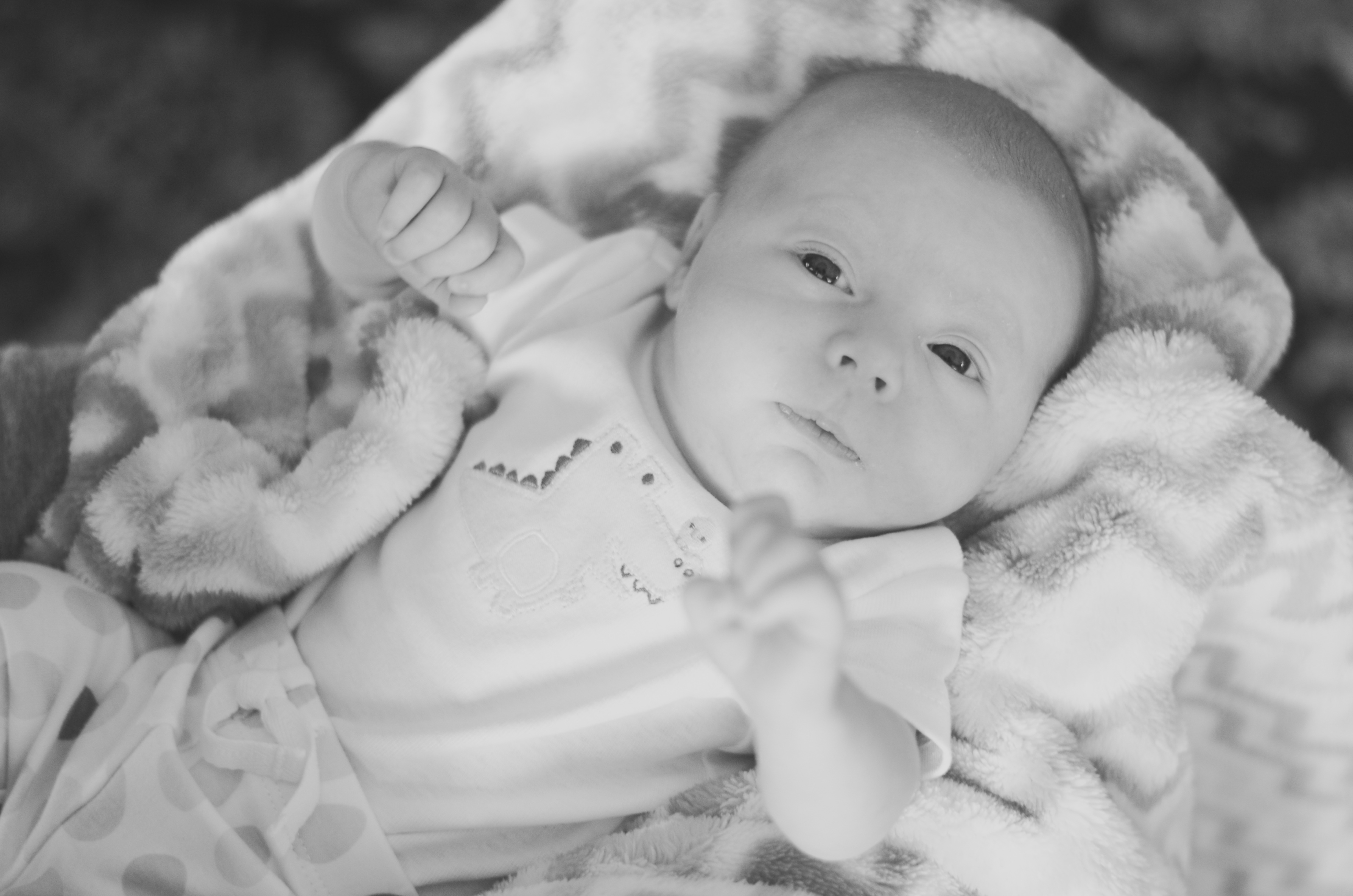 Those little elephants kill me. He only fit in his ‘coming home from the hospital’ outfit for a week or two. This kid was super long (22.5 inches, the longest one of our nurses had seen in her short career) so lengthwise he grows out of clothes quickly. He’s thin, however, so it’s made for a bit of a tricky dressing situation.