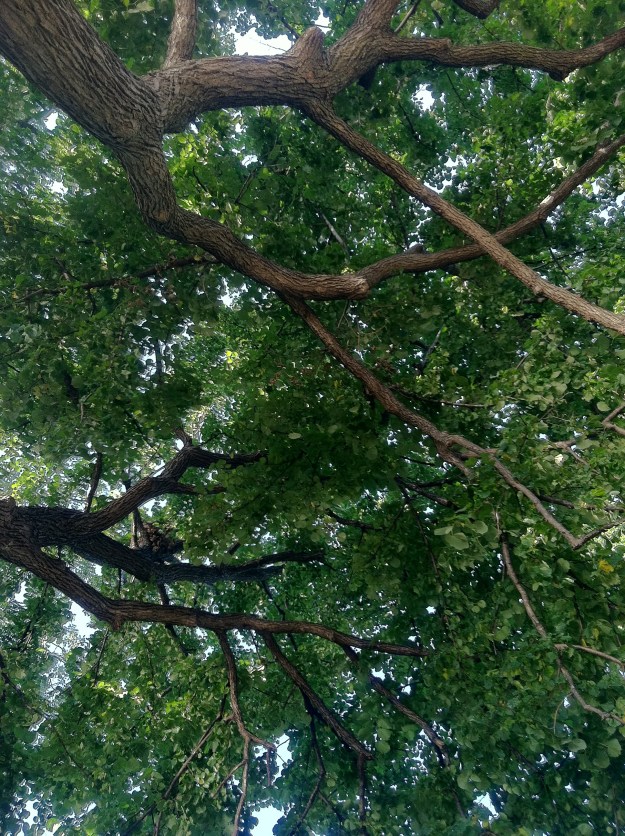 The beautiful canopy of trees over the cabin.